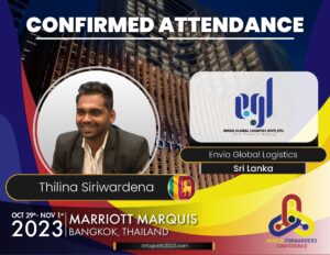 This October, our CEO, Thilina Siriwardena, will attend the 2023 World Forwarders Conference in Thailand. Envio Global Logistics (PVT) LTD is honoured to participate in this prestigious conference.